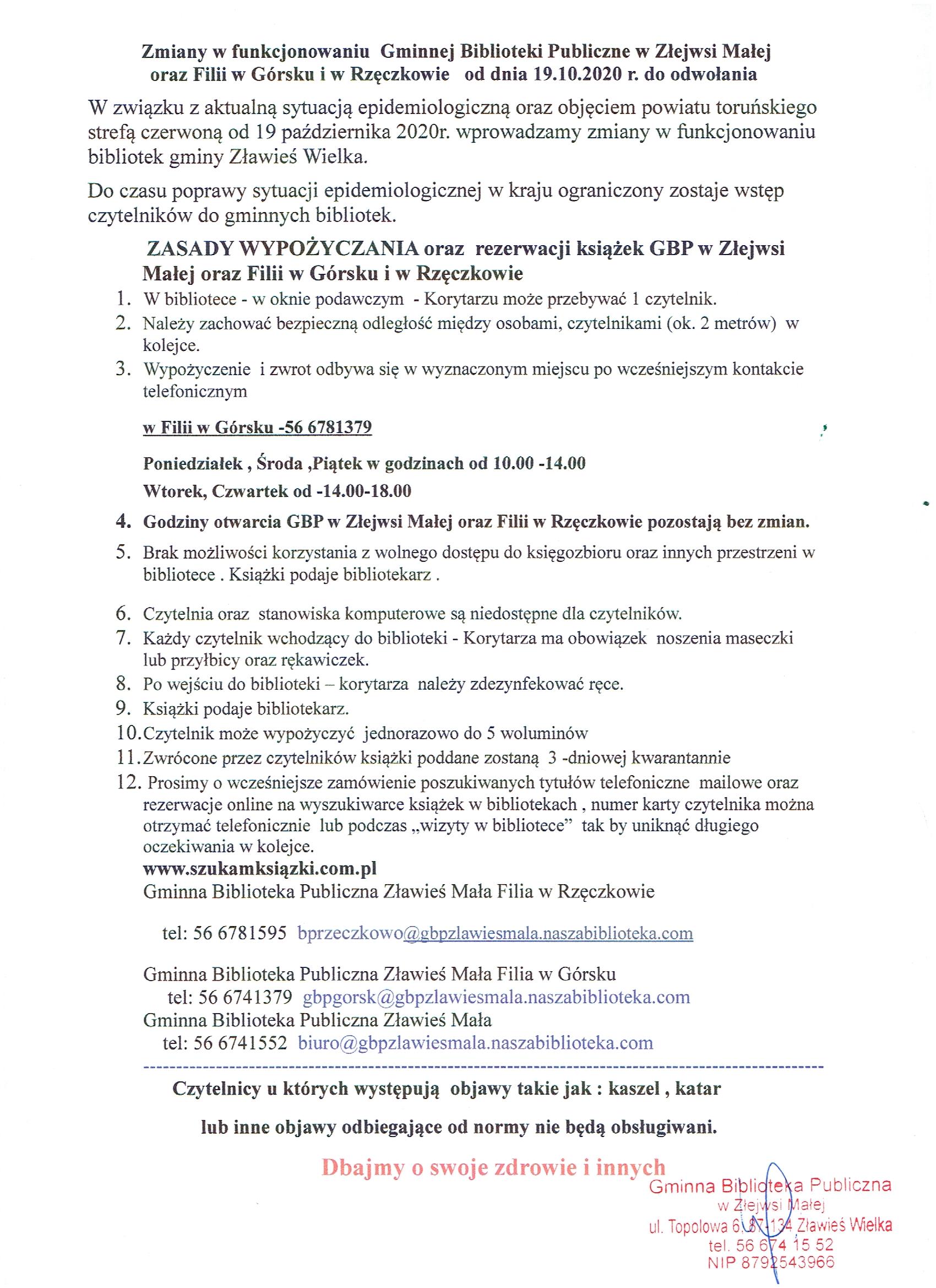 | utworzono: | data: 11:04, 19.10.2020 | przez: Ewa Wysocka | Zasady korzystania z biblioteki w czerwonej strefie - od 19.10.2020 r. |